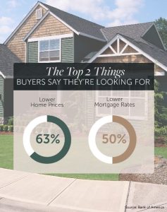A recent survey from Bank of America asked would-be homebuyers what would help them feel better about making a move, and it’s no surprise the answers have a clear theme. They want affordability to improve, specifically prices and rates (see below):